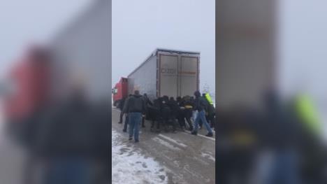 "Videli smo da je proklizao i poprečio se na putu. Imao je i neki problem sa točkovima. Zatvorio je obe kolovozne trake, a mi nismo želeli da ga ostavimo na cedilu. Zasukali smo rukave i krenuli da guramo. Nas desetak vozača, uspeli smo šleper da vratimo na kolosek kako bi nastavio put, a vozač bugarskog kamiona nam se srdačno zahvalio, rečima da ovakvu slogu i svrsdnu pomoć nigde doživeo nije - kazao je Miloš koji je učestvovao u guranju teškog šlepera.