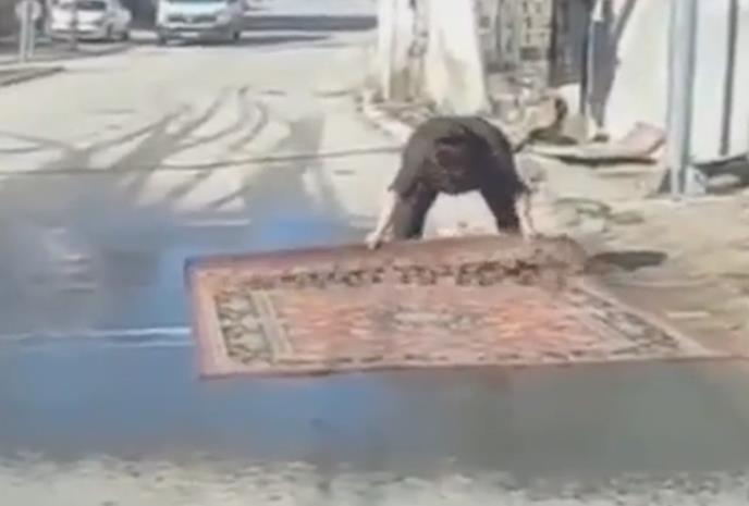 Žena je po svemu sudeći rešila da ga opere tepih, ali najbliže joj je bilo nasred puta.