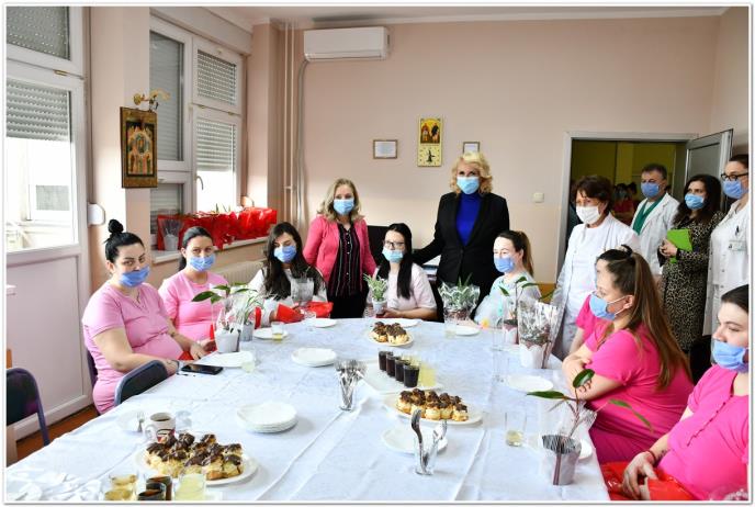 Načelnik Ginekološko akušerskog odeljenja dr Blagoje Milovanović upoznao je ugledne goste da je u 2022. godini zabeležen izvestan porast broja novorođene dece u odnosu na 2021, a u prva dva meseca ove godine rođeno je 16 beba više nego u istom periodu prošle. Trenutno je u Porodilištu smešteno 15 porodilja (sa 8 devojčica i 7 dečaka), a u protekla 24 časa rođene su 3 devojčice.