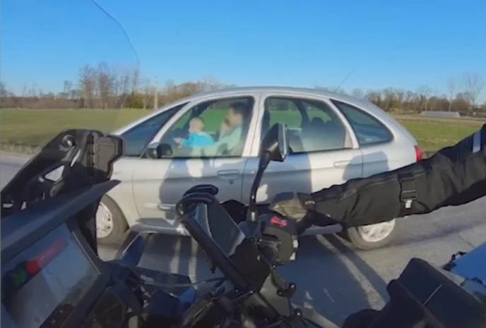 Na video snimku koji je postavio jedan motociklista jer ga je prizor uznemirio vidi se kako automobil šeta po putu, a dok ga motociklista zaobilazi vidi se kako vozač priča mobilnim telefonom dok u krilu drži malo dete.