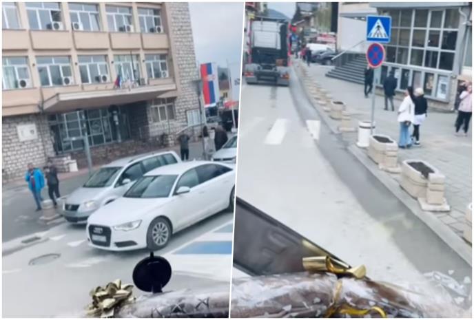 Na snimku se može čuti kako kolona kamiona neprestano trubi dok prolazi kroz grad, a iz samih vozila se čuju i pesme.
