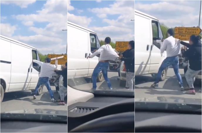 Naime, na snimku se vidi muškarac koji je izašao iz svog vozila i obračunava se sa vozačem belog kombija. U jednom trenutku, muškarac u beloj majici uzima nešto što liči na letvu i njom gađa vozača kombija.