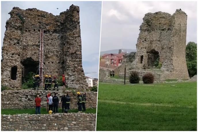 Pripadnici Gorske službe spasavanja, Vatrogasno - spasilačke jedinice i policije u Kruševcu su na terenu da bezbedno spustili B.T. (46) koji se popeo na Don Žon kulu.