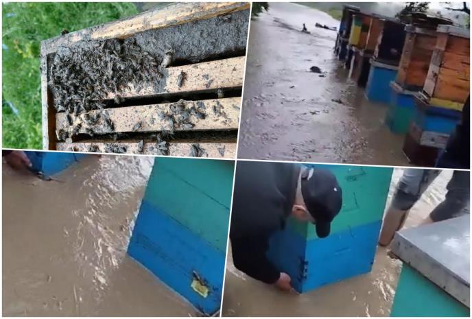 On kaže da su košnice postavljene na mestu gde nikada nije bilo poplave, ali da je potok, koji je udaljen više desetina metara, od velike količine vode nabujao i odneo košnice.