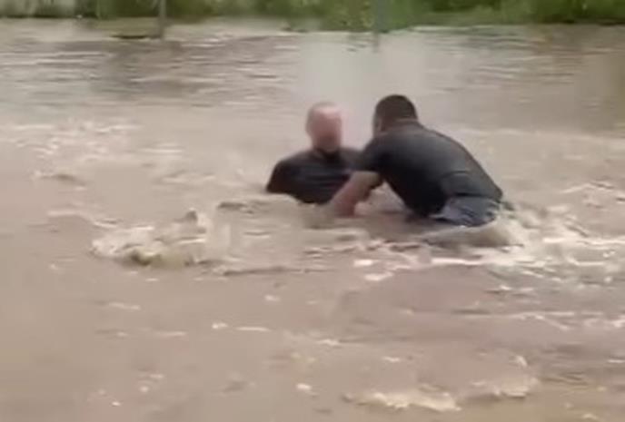 TOPOLA - Video-snimak iz Božurnje kod Topole, na kojem se vide dvojica odraslih muškaraca koji se jure i potapaju u vodi od poplave, dospeo je na društvene mreže.