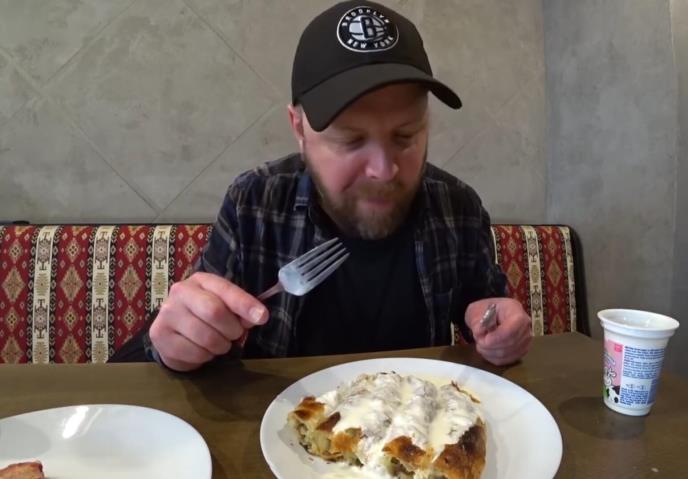 Potom je dalje snimao i kada je jeo burek sa mesom koji je prelio jogurtom.