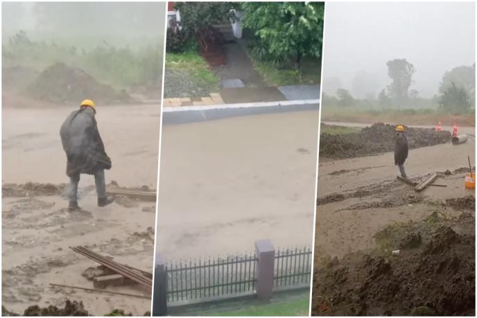 Na snimcima koji se mogu videti na Instagram stranici 192 bujice blatnjave vode slivaju se niz trsteničke saobraćajnice.