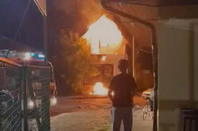 Kuća na Masarikovom trgu u Leskovcu zapalila se i potpuno izgorela nešto pre jedan sat iza ponoći, a na licu mesta su vatrogasne ekipe koje pokušavaju da lokalizuju požar.