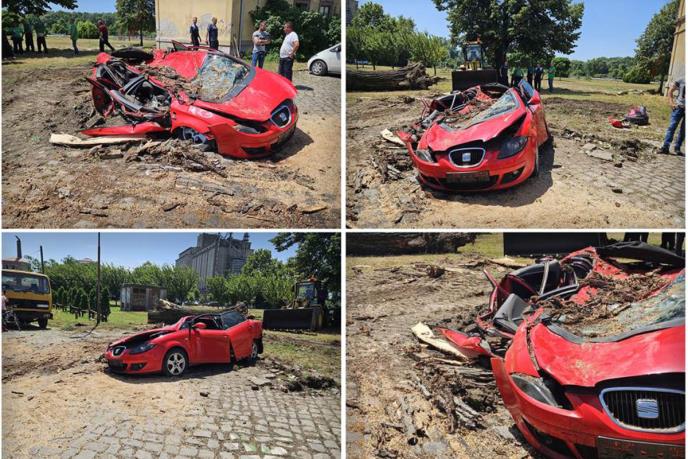 Na svu sreću, niko nije bio u automobilu tokom nevremena pa povređenih nema, a građani koji su prolazili pored uništenog automobila su međusobom komentarisali da ovako nešto nikada nisu videli.