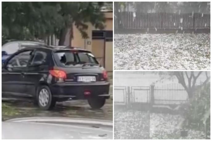 Kako se vidi na snimcima, pada krupan grad i nanosi su veliki.