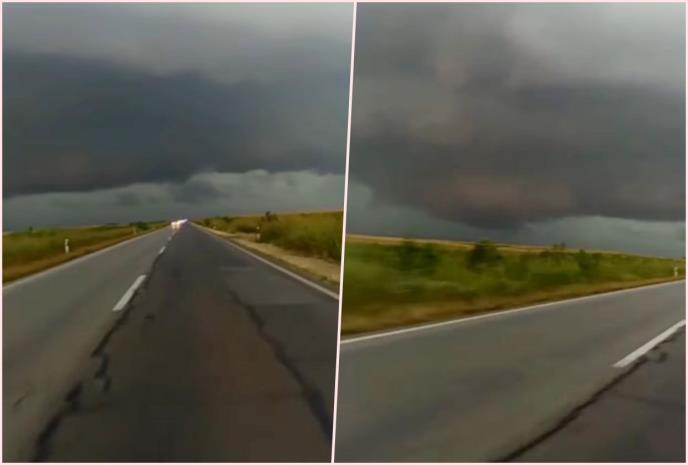 Oluja iz Beograda je u Banatu bila u fazi tornadogeneze. U levom delu snimka se uočava intenzivna rotacija, koja teži da se spusti ka zemlji.