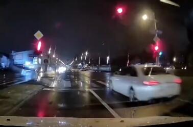 Na snimku se vidi kako "audi" ide velikom brzinom i ne smanjuje gas uprkos tome što je na semaforu čisto crveno. Pukom srećom, vozila koja su se uključivala u raskrsnicu su išla sporo pa nije došlo do sudara, što bi izazvalo katastrofalne posledice.