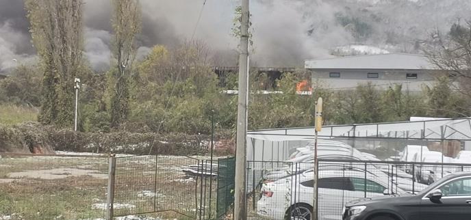 Gust crni dim nadvio se nad kompleksom Elektronske industrije gde je oko 5,30 sati jutros izbio požar u jednoj od hala.