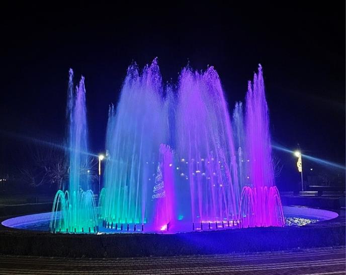 Sada je napokon obnovljena pa ponovo menja "igre" i boje, što posebno u večernjim satima izgleda lepo i daje posebnu čar banjskom parku.