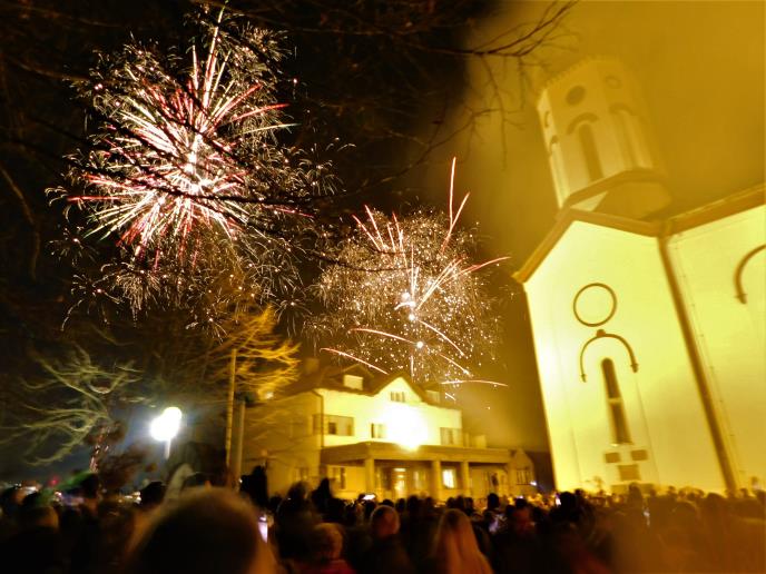 BADNJE VEČE KOD POKROVSKE CRKVE U LOZNICI: Upaljen badnjak uz veliki vatromet i kuvano vino (FOTO)