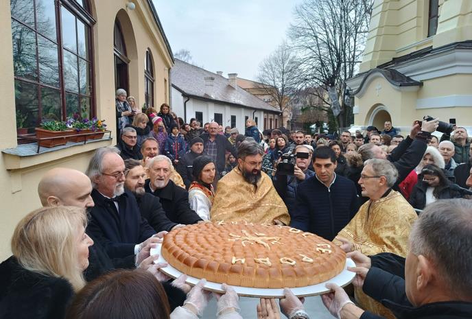 Tradicionalno lomljenje Božićne česnice i ove godine održano je u Kragujevcu, u porti Stare crkve.