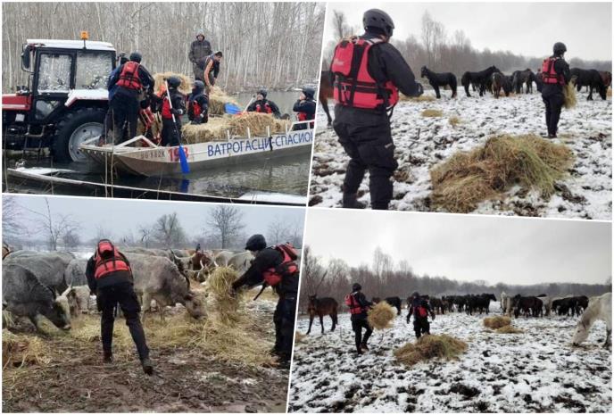 Prošle nedelje je skelama "Vojvodinašuma" koja je pritekla u pomoć, prevezeno oko 100 krava rase podolsko ili sivo-stepsko goveče, koje su genetski resurs Srbije.