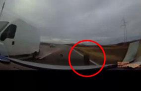Međutim, odjednom se kotrlja guma i udara u njegov automobi. Pneumatik je srećom sa automobila, a ne sa nekog kamiona. Čovek je odmah parkirao sa strane kako bi utvrdio štetu.