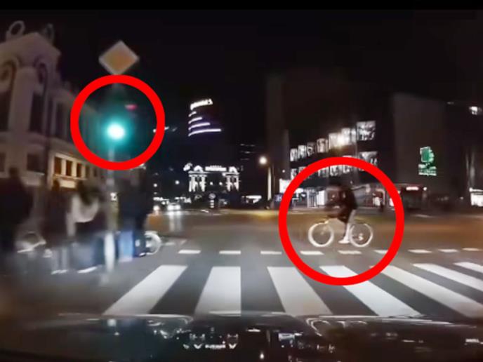 Ovako je naslovljen video, večeras objavljen na Instagram stranici 192. Na snimku iz Novog Sada se vidi kako automobil ide na čisto zeleno svetlo, a tada se pojavljuje dostavljač koji prelazi na "čisto crveno" za pešake.