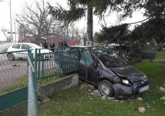 Automobil "fijat grande punto" danas je uleteo u jedno dvorište kod Obrenovca, i to kroz betonsku ogradu!