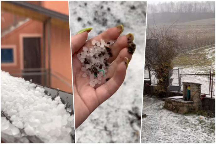 Grad veličine graška zasuo je dvorište jedne kuće, ali i okolinu, vidi se na snimku koji je objavljen na Instagram stranici "192_rs".