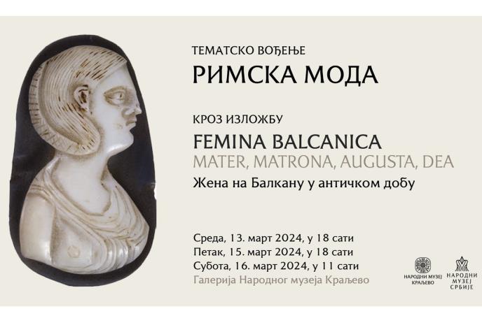 Narodni muzej u Kraljevu organizuje tematsko vođenje kroz izložbu „Femina Balcanica: Mater, Matrona, Augusta, Dea. Žena na Balkanu u antičkom dobu“ Narodnog muzeja Srbije, koje se odnosi na temu „Rimska moda“.