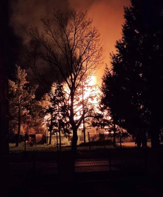 Požar je izbio nešto pre 21 časova. Goreo je krov i unutrašnjost objekta.