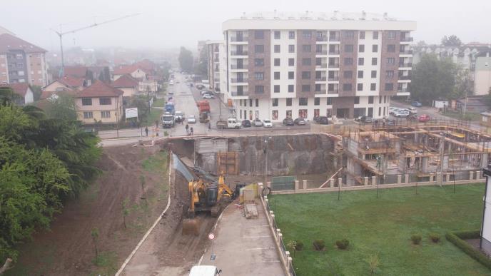- U utorak u poslepodnevnim satima došlo je do obrušavanja rova i iskopa za poslovno-stambeni objekat, tako da smo morali da izmestimo vodovodnu mrežu koja je prečnika 150 milimetara limenogvozdenih cevi u dužini od 62 metra. U tih 62 metra su i dve vodovodne šahte sa armaturom, to su šiberi, a danas treba da se formira ta šahta, rekao je za RINU Vladimir Đinić, šef službe za održavanje i gradnju.