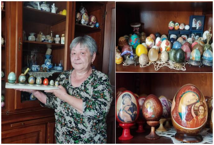 U vitrinama sa po tri reda polica u dnevnom boravku nalazi se preko 250 jaja, različitih veličina, motiva i oblika, a sakupljenih uglavnom iz Rusije, ali i iz Egipta, Tunisa, Grčke i drugih delova sveta.