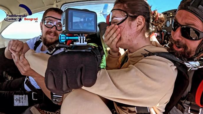 - Mira i ja smo zajedno već godinama i znao sam da je njena životna želja da skoči padobranom, ali nikada se na taj korak ne bi odlučila sama jer ju je bilo strah. Na njen rođendan odlučio sam da je iznenadim i sam sve zakazao u Beogradu. Skok sa 3.000 metara nadmorske visine uz pratnju instruktora, a sa sobom sam poneo i prsten, kaže Jovan za RINU.