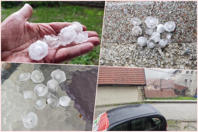 Posle jakog pljuska i vetra, usledio je grad. Prvo je padao grad veličine lešnika, a posle deset minuta padale su i krupnije ledenice veličine oraha.