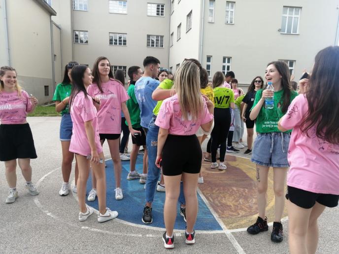 su i posebnim dres-kodom, majcama na kojima su ispisane oznake odeljenja Gimnazije koja su pohađali u prethodne četiri godine.