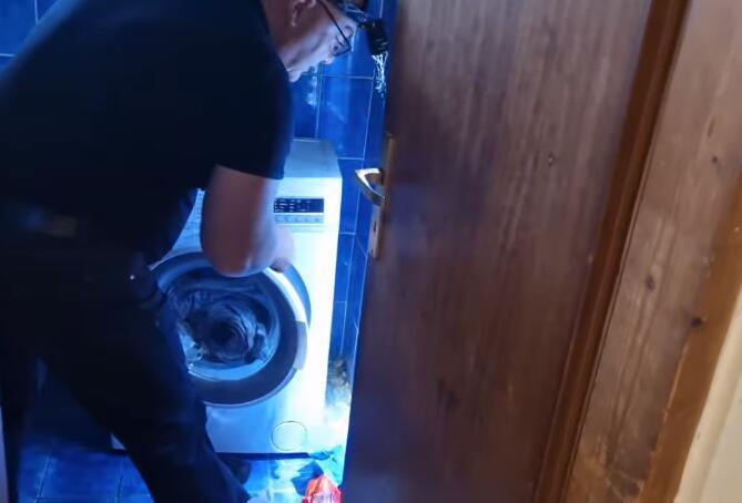 On je pomerio veš mašinu i zatim je nežno izvukao iz njenog tajnog skrovišta.