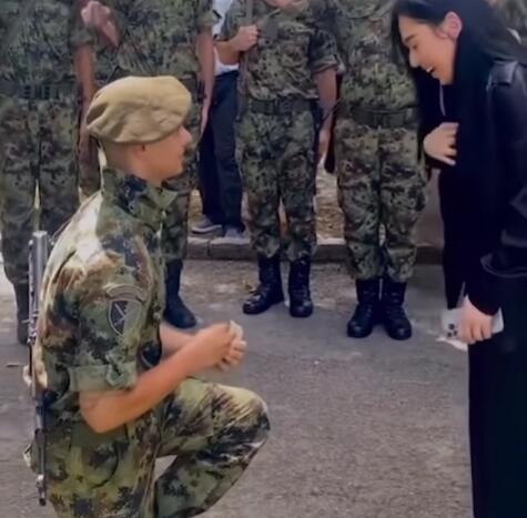 Na snimku koji je podelila Instagram stranica "valjevo_live", pripadnici junske klase su svečano položili vojničku zakletvu, nakon čega je jedan vojnik istupio iz čete i zaprosio svoju devojku - koja je sa suzama u očima rekla "DA"!