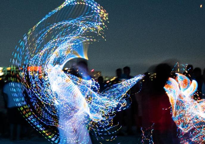 Autorka ovih fotografija prisustvovala je ovom nesvakidašnjem ritaulu i pokušala da uhvati i zabeleži sinergiju svetlosti, zvuka i plesa.