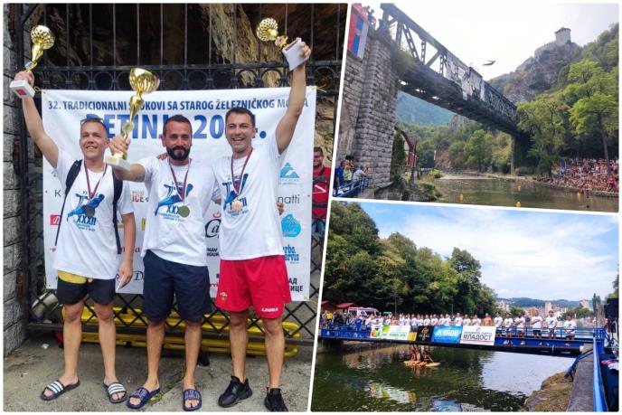 JAKA KONKURENCIJA I OVACIJE SA OBALE ĐETINJE: Skokovi sa Starog železničkog mosta u Užicu, pobedio Sarajlija (FOTO/VIDEO)