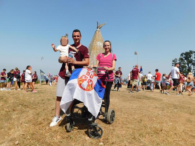 U pola osam u nedelju ujutru, ispred Crkve Pokrova Presvete Bogorodice u Loznici, našli su se Vasiljevići i krenuli na marš od 11 kilometara koliko ima do spomen-kosturnice na vrhu Gučeva. Zajedno tata Stefan sa suprugom Aleksandrom i petnaestomesečnom ćerkicom, koja je na cilj stigla u dečjim kolicima ukrašenim srpskom trobojkom.