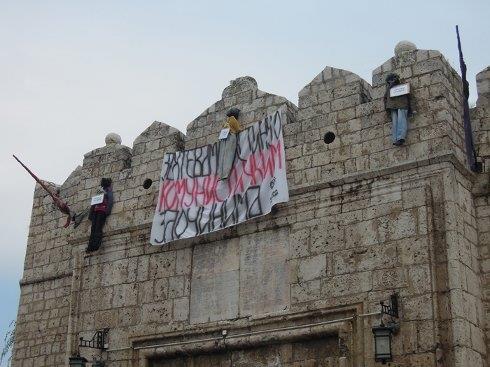 NIŠ - Transparent koji je tokom noći postavila "Srbska akcija", sa ćiriličnim natpisom "Zahtevamo pravdu za komunističke zločine", uklonjeni je jutros.