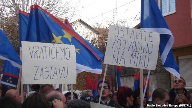 Demonstranti su nosili transparente "Ostavite Vojvodinu na miru", "Vratićemo zastavu", "Ovde će se ponovo vijoriti zastava Vojvodine", "Tako to rade legalisti - krše Ustav koji su sami doneli".