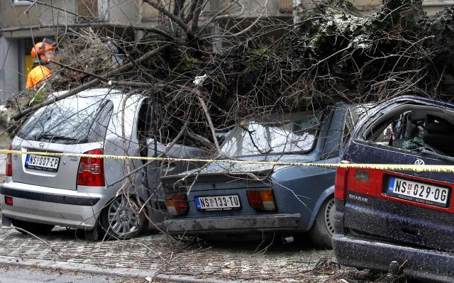 Novi Sad: Vetar oborio stablo, smrskani automobili
