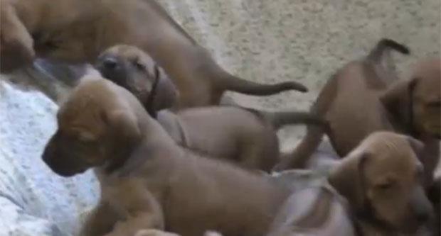 Keruša Kvini i njenih 14 štenaca su retka rasa u Srbiji - rodezijski ridžbek ili afrički gonič lavova. Jedna od odlika im je posebna vezanost sa decom, što štenci i Matija i dokazuju.