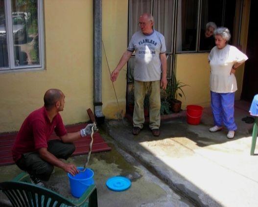 "Uplašili smo se, naravno", kaže Biljana Nikolić. "Pozvali smo vatrogasce, a oni su mi dali broj Zoo Planeta. Zvala sam ih, oni su došli i uhvatili zmiju".