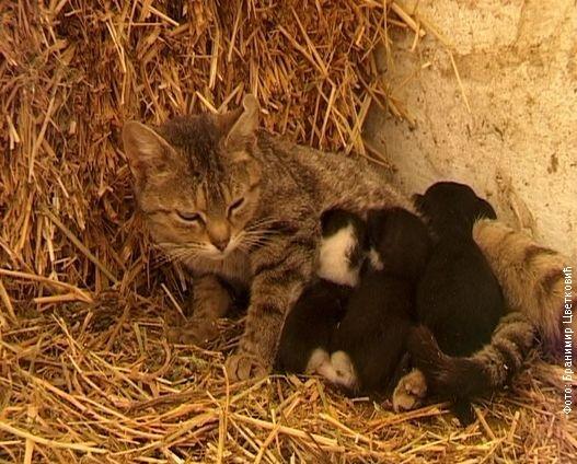 Majčinski instikt nadvladao je ovde pravila prirode. Jedna ga je donela, ali o usvojeniku brinu sve. Pravila nema, što se obroka tiče, i svaka je spremna da ga nahrani.
