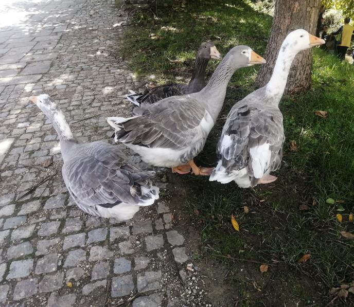 Nedaleko od crkve Sveta Petka u Vranju pored Vranjske reke dva gusana i dve guske prošetali su uzdignute glaveuživajući u nedeljnom suncu. Dugog prelepog perja šepurile su se reagujući na prolaznike koji su se zatekli ispred crkve.