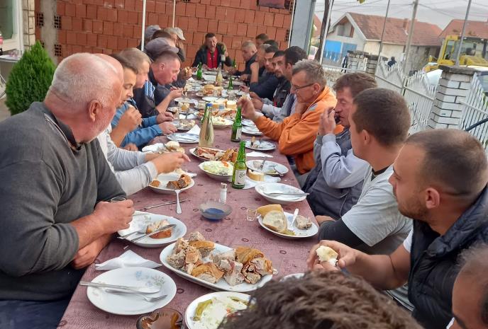 Oni su se dogovorili da prikupe novac, kupe prase i piće i svi zajedno ručaju. Za pripremu je bila zadužena porodica Stojanović.