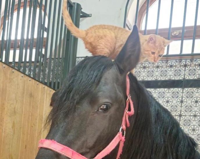 Dok pastuv Espanja uživa u svom boksu u štali ili se sprema za trening, oko nogu mu se mota Cicko - živahno mlado mače, neuporedivo manje od moćnog andaluzijskog pastuva. Došao je samo po malo maženja i druženja, a zvuk zadovoljnog predenja pokazuje koliko su dobri drugari postali tokom proteklih par nedelja.