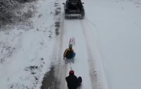 Kako se vidi na snimku podeljenom na Instagramu, vozač automobila za koji su prikačene sanke, vuče dvoje dece po snežnom putu, a koliko je scena naizgled zimske idile zabrinula korisnike najbolje se vidi iz komentara.