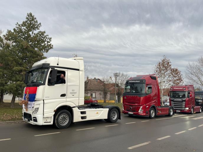 Kolona kamiona, okićenih srpskim zastavama i badnjacima, krenula je iz Laćarka i nastavila svoj put kroz ključne delove Sremske Mitrovice. Zvuk sirena odjekivao je ulicama, privlačeći pažnju i izazivajući osmehe među okupljenim prolaznicima.