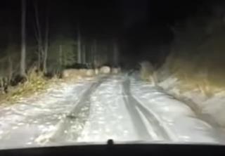 Na snimku, koji je zabeležio jedan vozač tokom vožnje uskim planinskim putem, vidi se krdo divljih svinja kako prelazi put pod okriljem noći. Snežni pejzaž dodatno naglašava dramatičnost trenutka, dok automobil pažljivo prati ove fascinantne životinje koje se kreću u svom prirodnom okruženju.