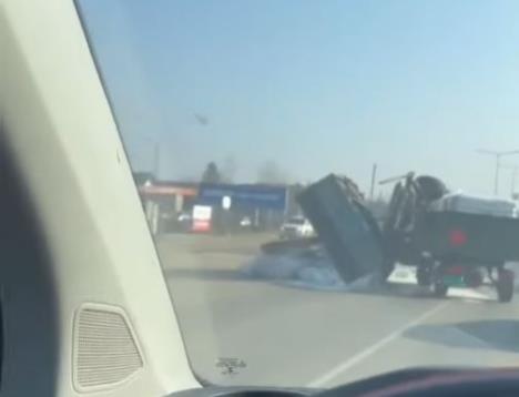 NOVI SAD - Na Rumenačkom putu u Novom Sadu prevrnuo se traktor i preprečio kolovoz, a da nesreća bude još veća, deo tovara iz prikolice rasuo se svud po putu.